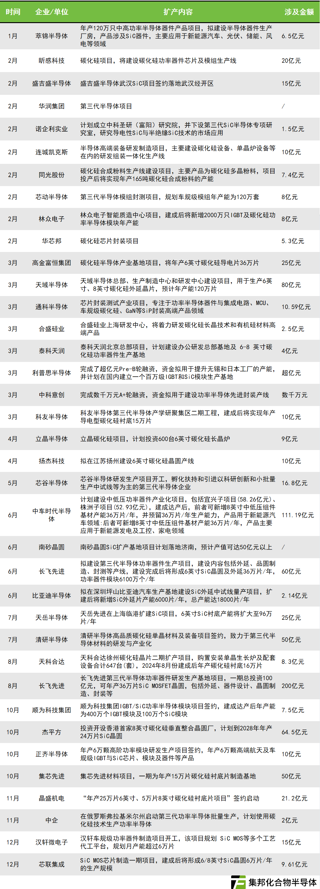 2023年国内厂商SiC相关扩产项目汇总