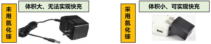 氮化镓在生活中主要应用于各种快充头,开关频率高、损耗低、体积小,适合做电源芯片。