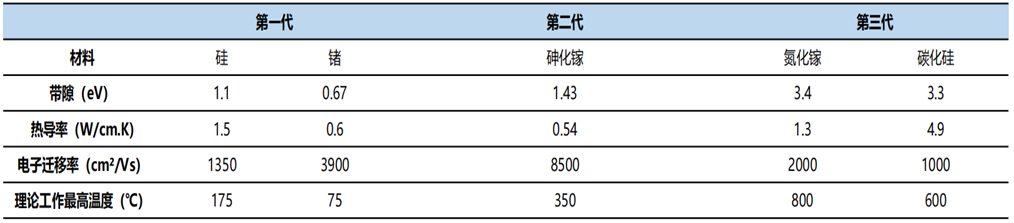 影响半导体材料性能最重要的两个参数为高载流子迁移率(即“电子迁移率”)和带隙,由于硅在这两个方面参数较低,无法满足部分场景应用,因此第三代半导体材料应运而生。