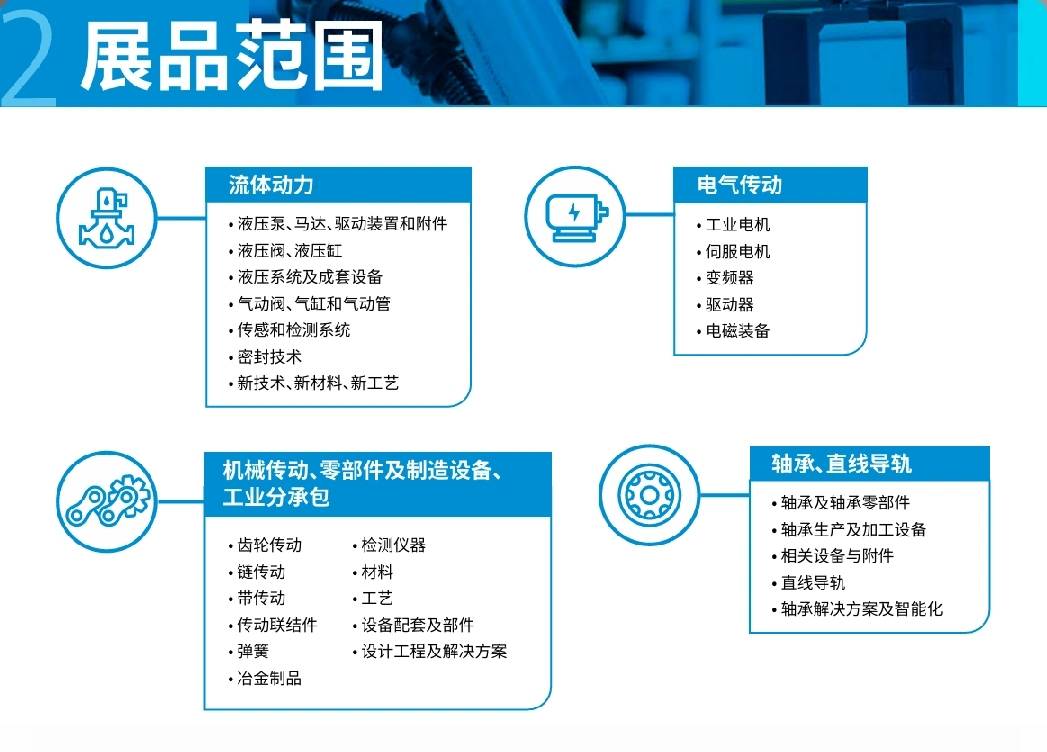 展会预计会吸引超过 1800 家全球展商参展,这些展商来自世界各地,带来最前沿的技术和产品。同时,预计将有 15 万专业观众到场,涵盖了动力传动行业的各个环节,从制造商到采购商,从技术专家到行业学者,为展会注入了多元的视角和活力。11 万平方米的展示面积,划分成 11 大核心领域,包括液压、气动、齿轮、轴承等,展品琳琅满目,从微小的零部件到大型的传动设备,应有尽有,致力于打造 “智能制造核心零部件一站式采购平台”,让参观者在这里能够找到所有与动力传动相关的产品和解决方案。