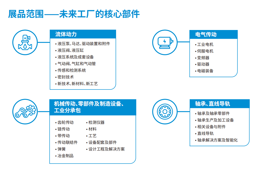 展会覆盖动力传动全产业链,主要分为以下十一大核心展品门类: