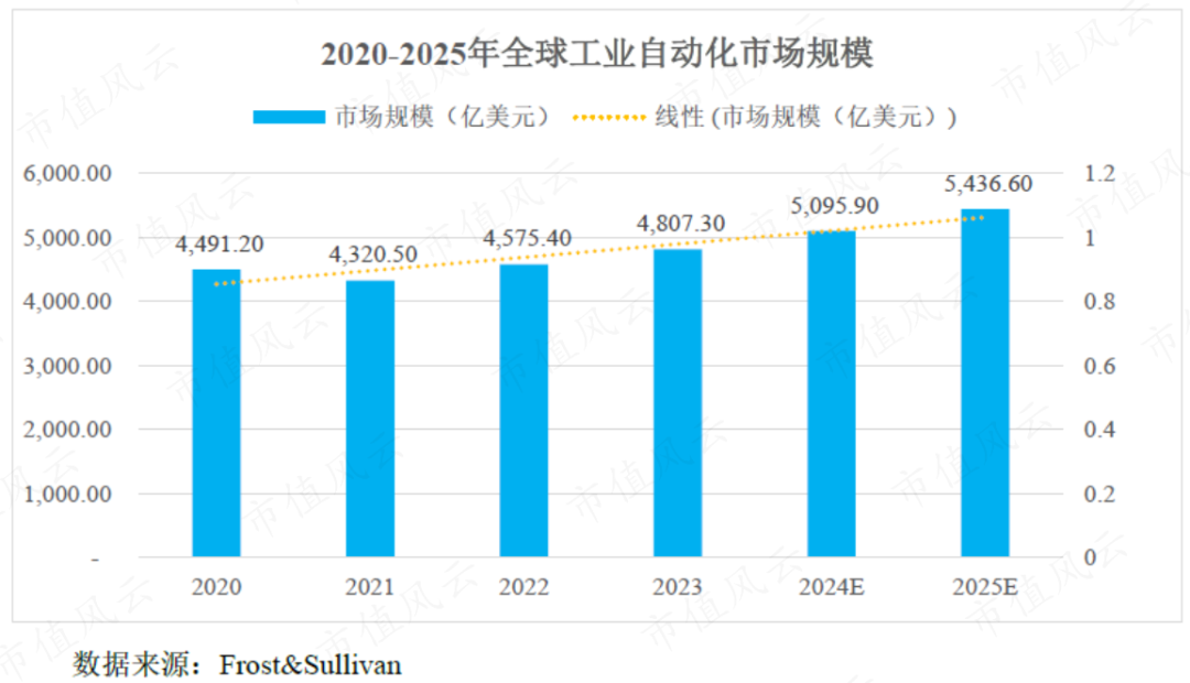 根据Frost&Sullivan数据显示,2023年,全球工业自动化市场规模达4,807.3亿美元,未来随着全球工业4.0时代的持续推进,预计到2025年将达5,436.60亿美元。