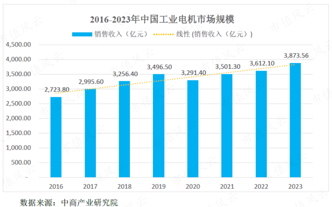 瑞迪智驱目前的产品主要配套于伺服电机、步进电机等各种类型的工业电机。根据中商产业研究院数据,2022年,我国工业电机市场规模达3,874亿元。